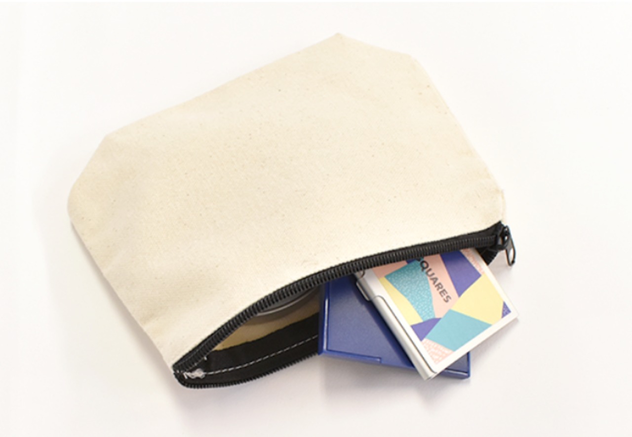コットン素材を使用した便利な底マチ付き万能ポーチです。